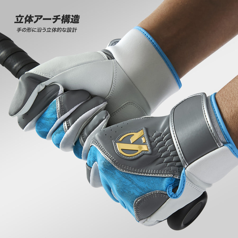 ― 握るために、作られた設計 ― 高いフィット感を生み出している理由は、自然な手のアーチを再現した立体構造にある。 2026年モデルでは、バットを握ったときに無駄な力が加わらないよう、設計段階から手袋自体に自然なアーチがかかるよう緻密に計算。 ただ平面を縫い合わせるのではなく、プレイヤーの手の形に沿う立体的な設計を採用した。 この構造を形にするために、高い縫製技術を駆使。 指先から手の甲までが自然につながり、握った瞬間に違和感なくフィットする。 力を入れなくてもバットを包み込めることで、スイング時の余計な力を抑え、よりスムーズな振り出しを可能にした。 手袋が、手の一部になる。